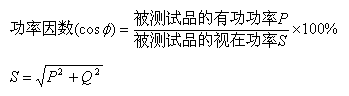 功率因数是功率因数角Φ的余弦值,意义为被测试品的总视在功率S中有功功率P所占的比重。功率因数的定义如下: